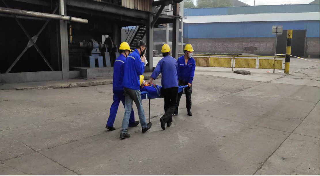 此次演練模擬炭化四樓操作工在巡檢過程中,發生煤氣中毒。事故發生后,相關工作人員按照各自分工有序撥打電話及在對講機呼救、拉警戒線、疏散人員、焦化車間立即啟動應急預案,組織人員搶救。在強有力的組織協調,各小組有序配合,排除險情,圓滿完成演練任務。