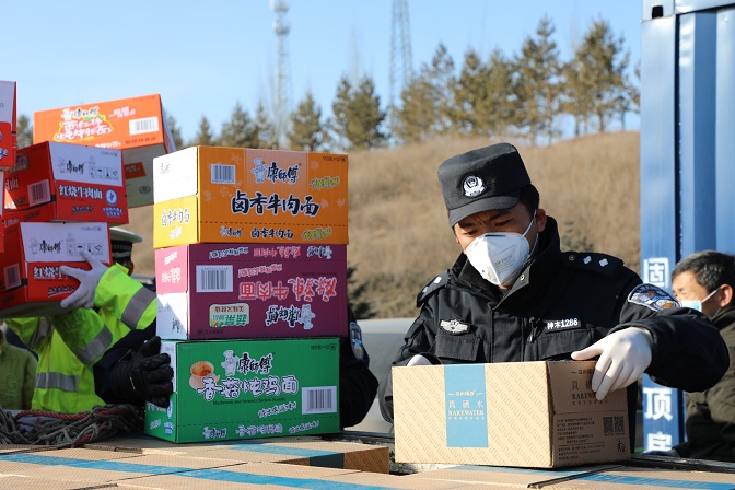 公司黨委高度重視地企協作疫情防控工作。此次慰問,公司為執勤人員購買了60箱方便面、500雙手套、500個口罩和一些其他生活用品,為他們送上別樣的溫暖。