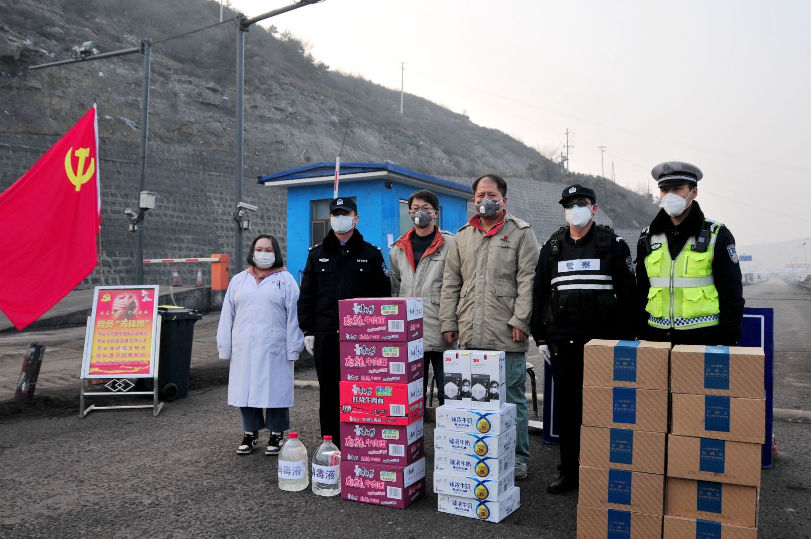 2月7日,在位于沙梁村道路上的疫情防控交通管控檢查點,東鑫垣公司為廟溝門鎮派出所的執勤人員送去消毒液、口罩、水、牛奶、方便面等慰問物資,表達企業對地方政府開展疫情防控工作的一份支持。(馬佳亮)