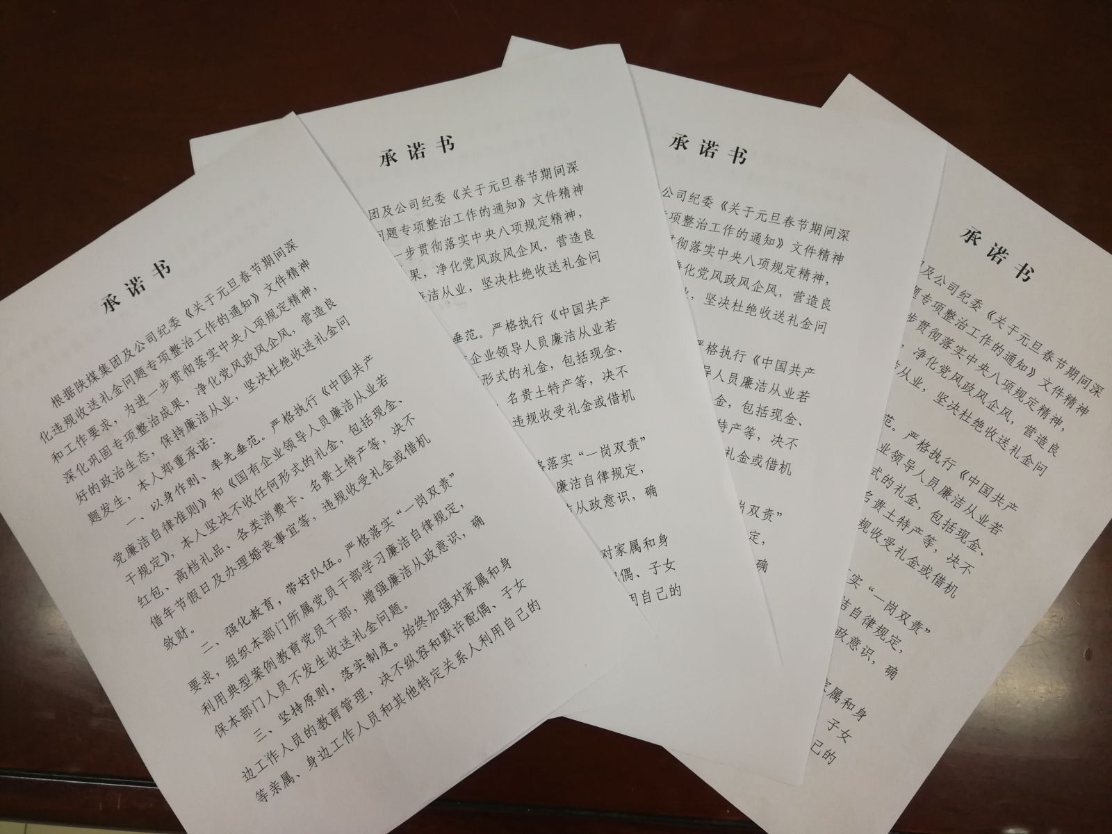 干部帶頭作出承諾。公司紀委組織班子成員、全體中層干部40余人認真開展了深化違規收送禮金問題專項整治自查自糾,并簽訂了決不違規收送禮金的承諾書。引導客戶和業務合作方7人公開做出決不向我方人員贈送禮金的承諾。