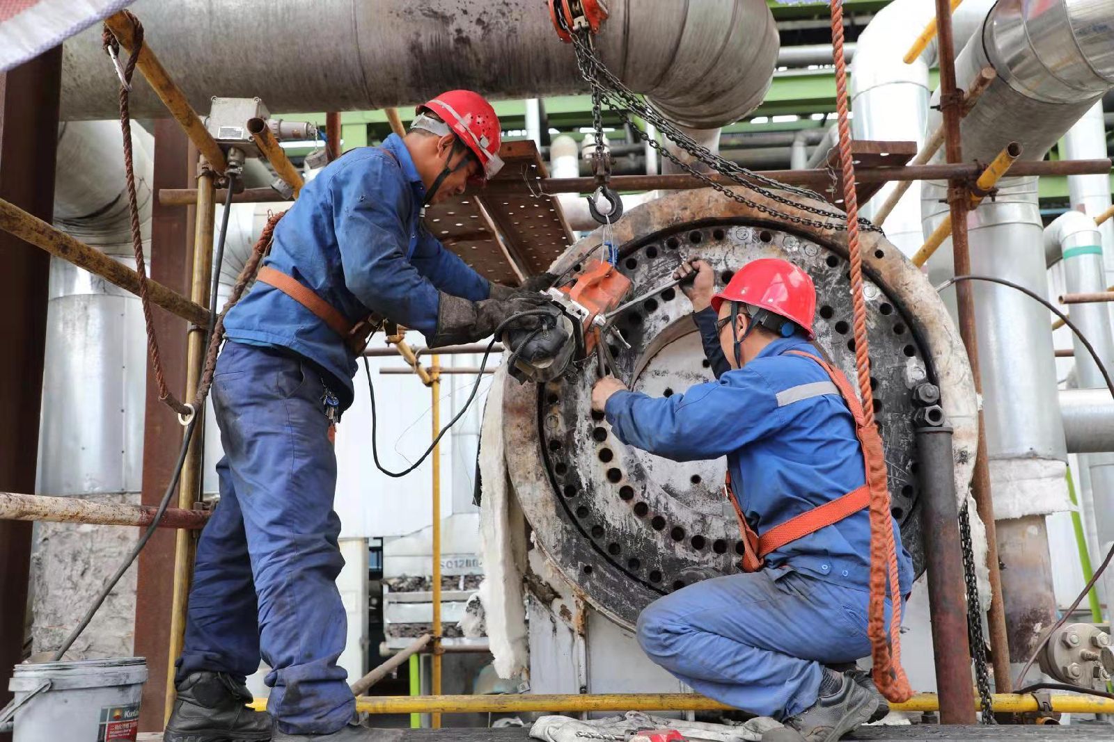 盛夏六月,天元公司各生產(chǎn)裝置大檢修工作如火如荼進(jìn)行著,天元公司全體干部職工齊心協(xié)力,通力配合,堅(jiān)守在檢修一線。一個個忙碌的身影穿梭在裝置區(qū)內(nèi),在狹小的空間里焊接管線、抽堵盲板、拆裝設(shè)備……他們用辛勞詮釋著擔(dān)當(dāng),用汗水凝聚著力量,在平凡中孕育著“非凡”,為大檢修工作交出一份滿意的答卷。