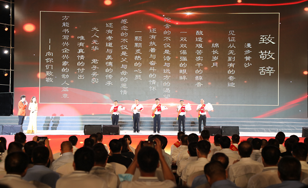 “漫步黃沙,見證從無到有的奇跡;綿長歲月,釀造艱苦實干的醇香。一雙雙倔強的眼眸,飽含的不僅是詩與遠方的渴望,還有執著與奮斗的情懷?!鳖C獎盛典還隆重表彰了十名“最美員工”和“十大杰出青年”,組委會為他們獻上鮮花和致敬詞,并頒發了獎杯。通過大力宣傳“最美員工”和“十大杰出青年”先進事跡,充分發揮先進典型的示范和帶動作用,掀起崇尚先進、學習先進、爭當先進的熱潮。(徐曉林)