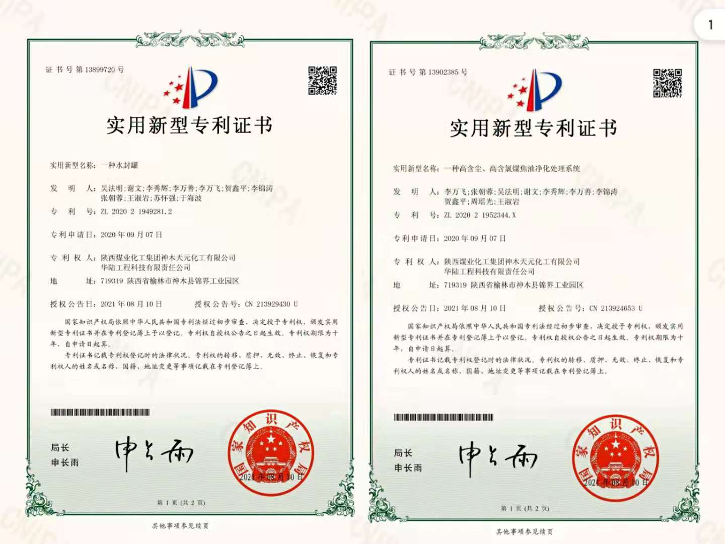 近日,神木煤化工天元公司低階粉煤熱解分質利用技術新增2件實用新型專利授權。截至目前,該技術共計獲國家授權專利74件,其中發明專利17件,實用新型專利57件。