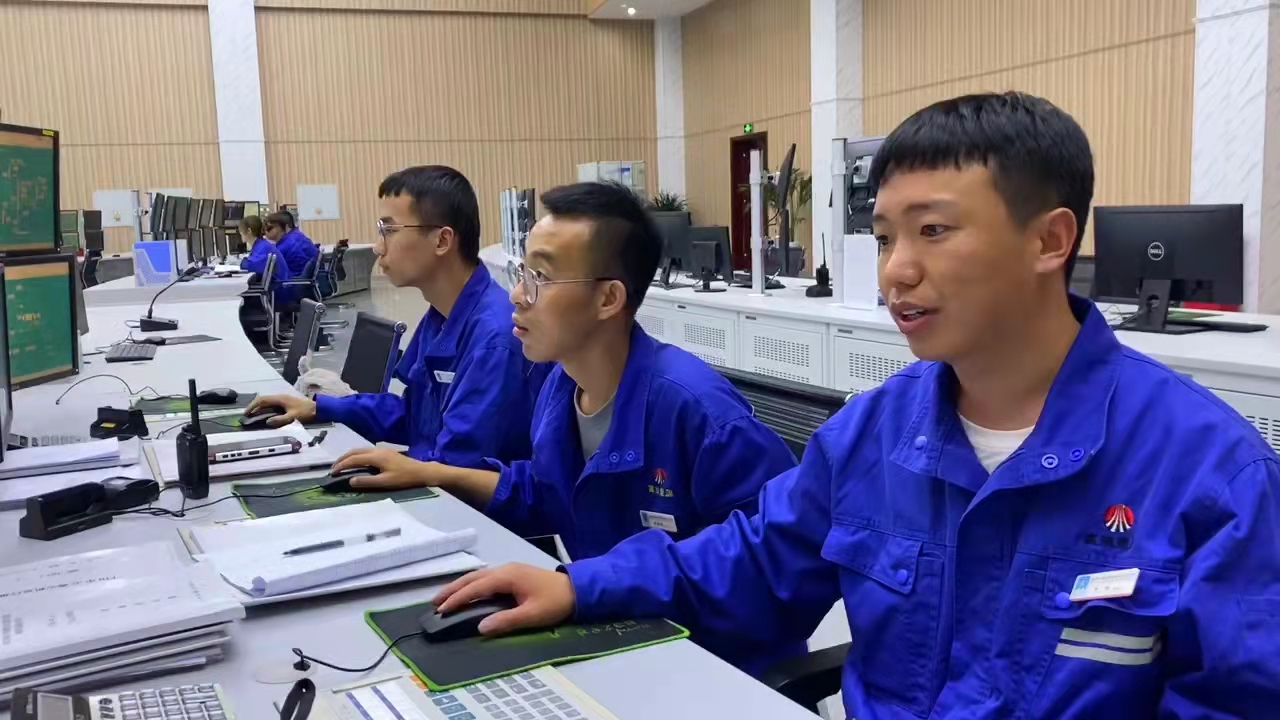 中控室里,當班員工都在密切關注著生產工藝運轉情況,認真監盤并仔細記錄電腦屏幕上的各項運行參數指標。他們用愛崗敬業踐行著“我在崗我負責”的莊嚴承諾,在關鍵工序環節,不放過每一個微小的數據變化,認真檢查、精心操作,確保工藝指標達標。