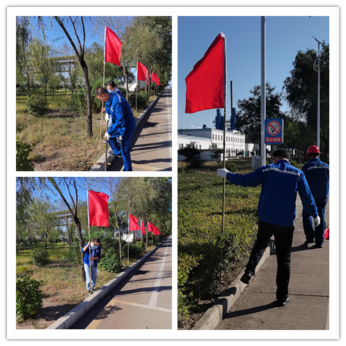 為慶祝新中國成立72周年,9月28日,神木煤化工天元公司第一黨支部開展了“紅旗招展迎國慶”主題黨日活動,在公司廠區(qū)主干道兩側(cè)、中控室和行政樓前布置國旗,以表達(dá)對祖國母親生日的祝福。
