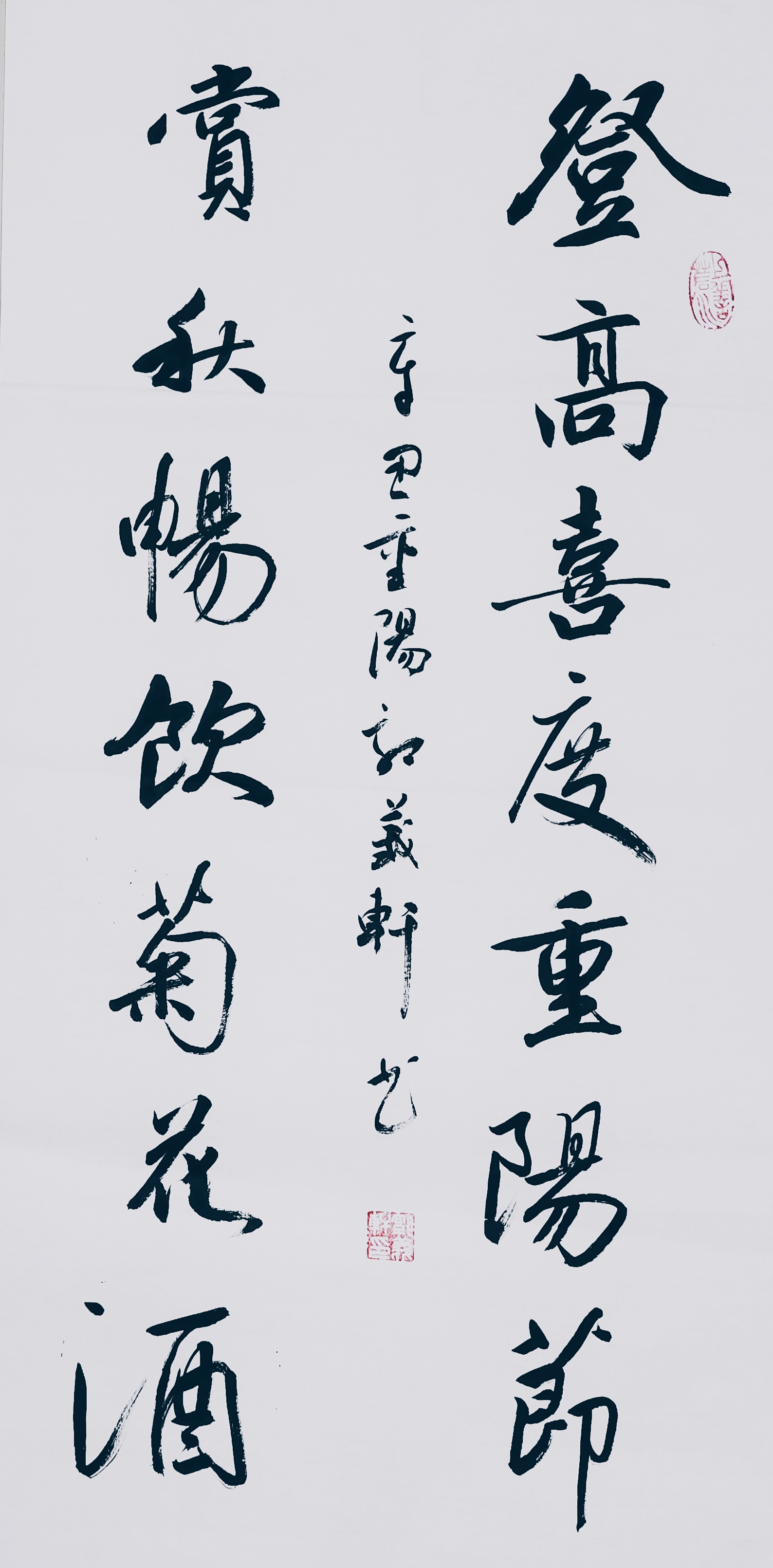 對聯:登高喜度重陽節,賞菊暢飲菊花酒。