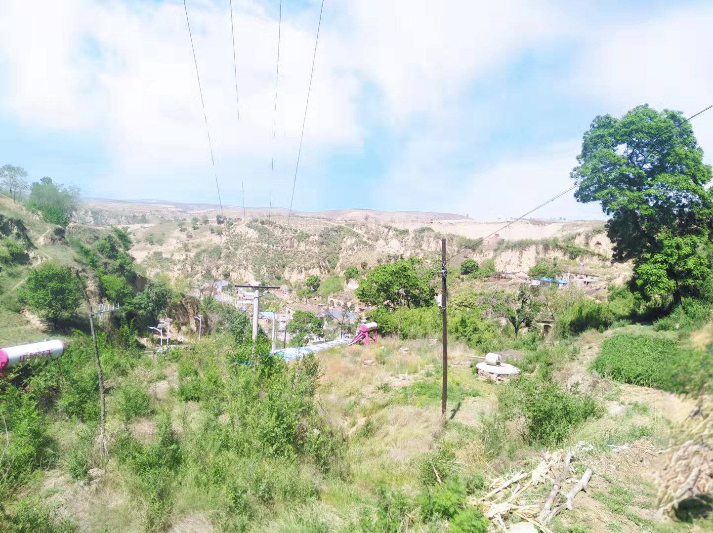 “曖曖遠人村,依依墟里煙”,炊煙升起的地方,是最溫暖的地方。坐在門口曬太陽的大爺,看著院子里玩耍的孩子,農村的新奇,儼然成了孩子們的樂園,滿臉的笑容沉醉中。滿山不知名的樹,葉子呈橢圓狀,枝干皮質粗糙,樹心黃亮,每到秋天,便紅透整座山。村對面的溝里,偶有村里的大爺背著一捆糜子出來,但已看不到成群的老黃牛了,這個畫面還是很熟悉。曾經,這里是那么“熱鬧”,年邁的、力壯的、大人、小孩,都要在秋天把一年的莊稼拉回來。傍晚時分,伴著那悠長的趕牛聲,慢悠悠地回家,只記得,那時的天很藍、路很遠。