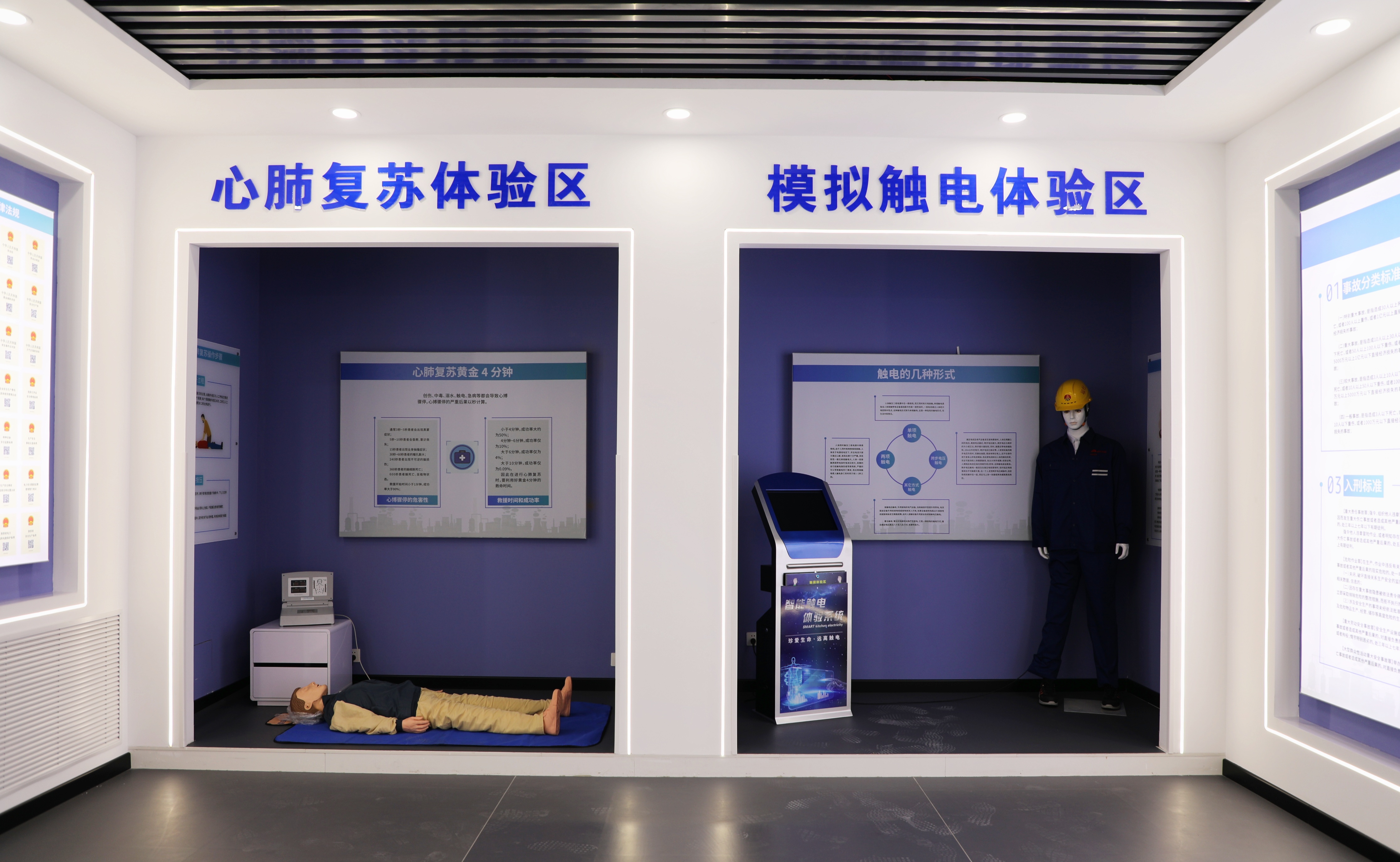 安全警示教育室以“事故警示教育、安全知識教育、實際操作體驗”為標準,安全教育室包括警示教育區、互動學習區、案例展示區、安全培訓區四個區域。通過展示圖板,視頻警示、互動式體驗,采用生產一線活生生的素材,揭示了忽視安全、漠視生命而帶來的慘痛教訓。進一步提升能源公司員工安全認知能力和安全憂患意識,時刻繃緊安全弦。