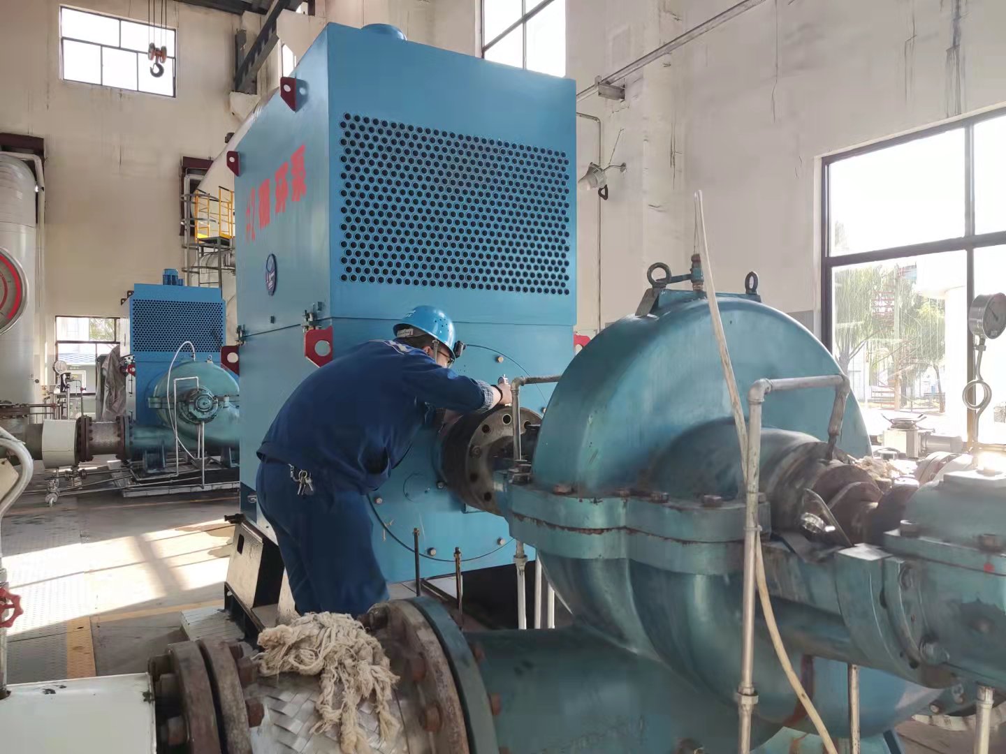 10月18日14時30分,汽機(jī)副主任工程師劉軍在供熱首站指導(dǎo)熱網(wǎng)循環(huán)泵啟動工作。四值班長劉勝平與供熱值班員密切配合,各司其職,做好循環(huán)泵啟動工作。瞧!值班員劉飛艷在聯(lián)系電氣送電,轉(zhuǎn)身提著油壺健步走向熱網(wǎng)循環(huán)泵加油,劉美琴就地打開熱網(wǎng)循環(huán)泵進(jìn)出口電動門、冷卻水分門及循環(huán)泵泵體頂部排空氣門,一切準(zhǔn)備就緒。