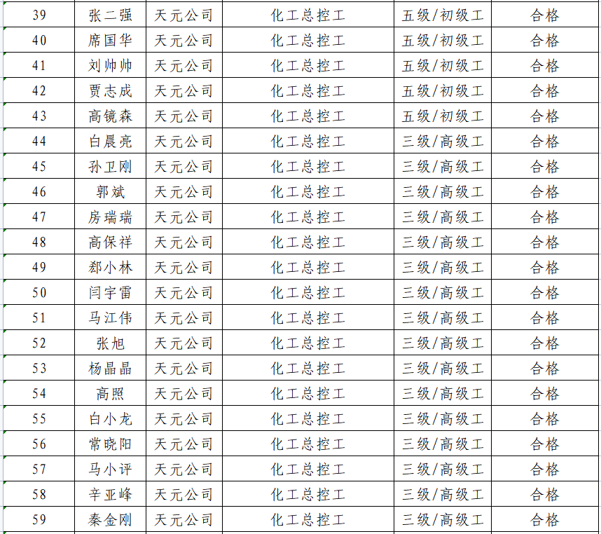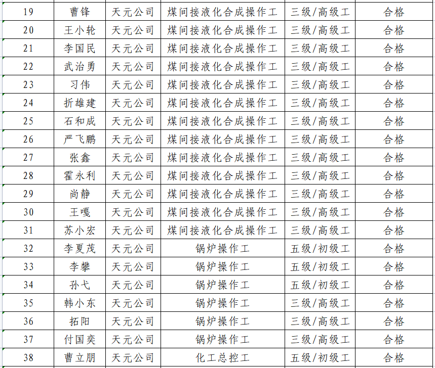神木煤化工產業有限公司關于2021年度職業技能等級認定初中高級擬通過人員名單公示