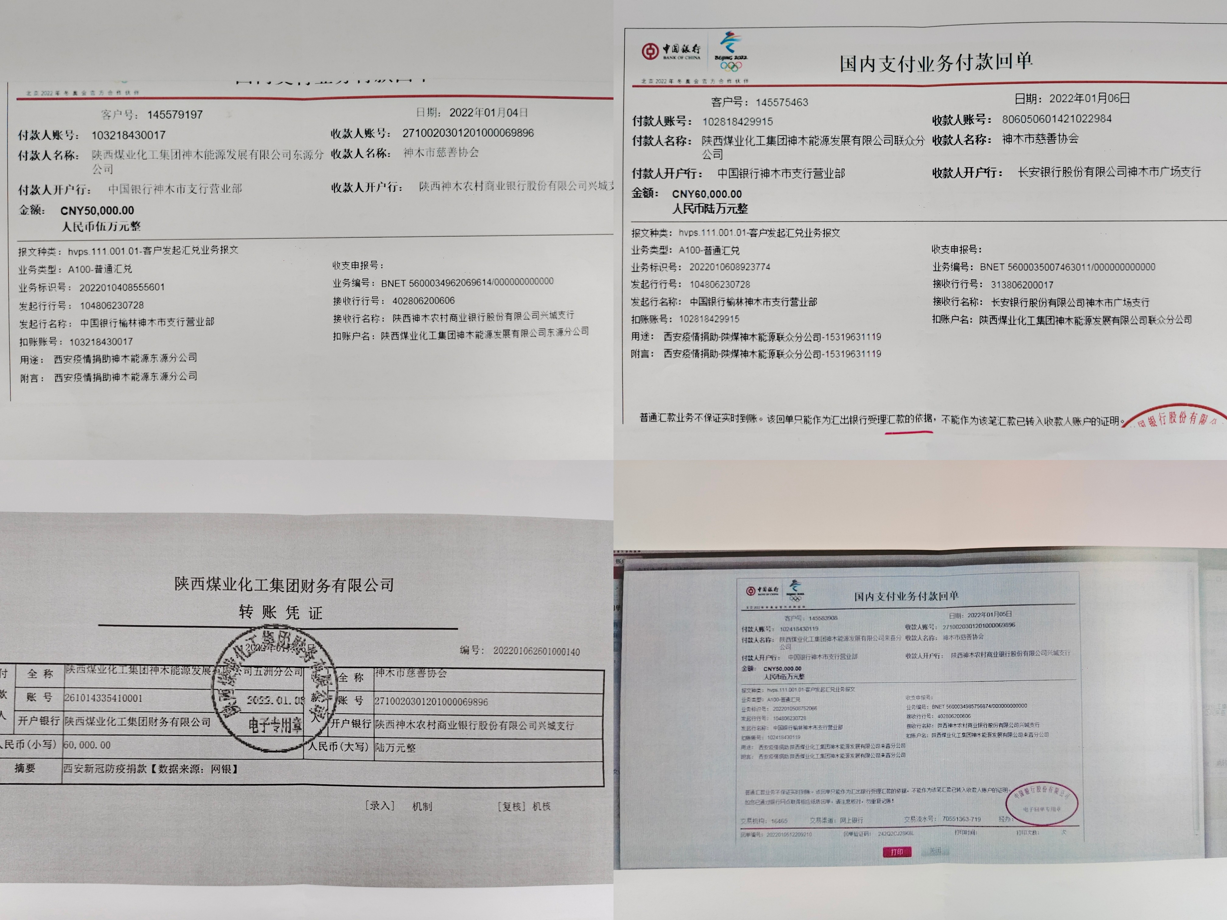 一方有難,八方支援,齊心協(xié)力,守望相助。1月4日至6日,神木煤化工能源公司積極聯(lián)系神木市慈善協(xié)會募捐平臺,先后向西安疫情抗擊一線進行4次捐款,累計捐資20余萬元。