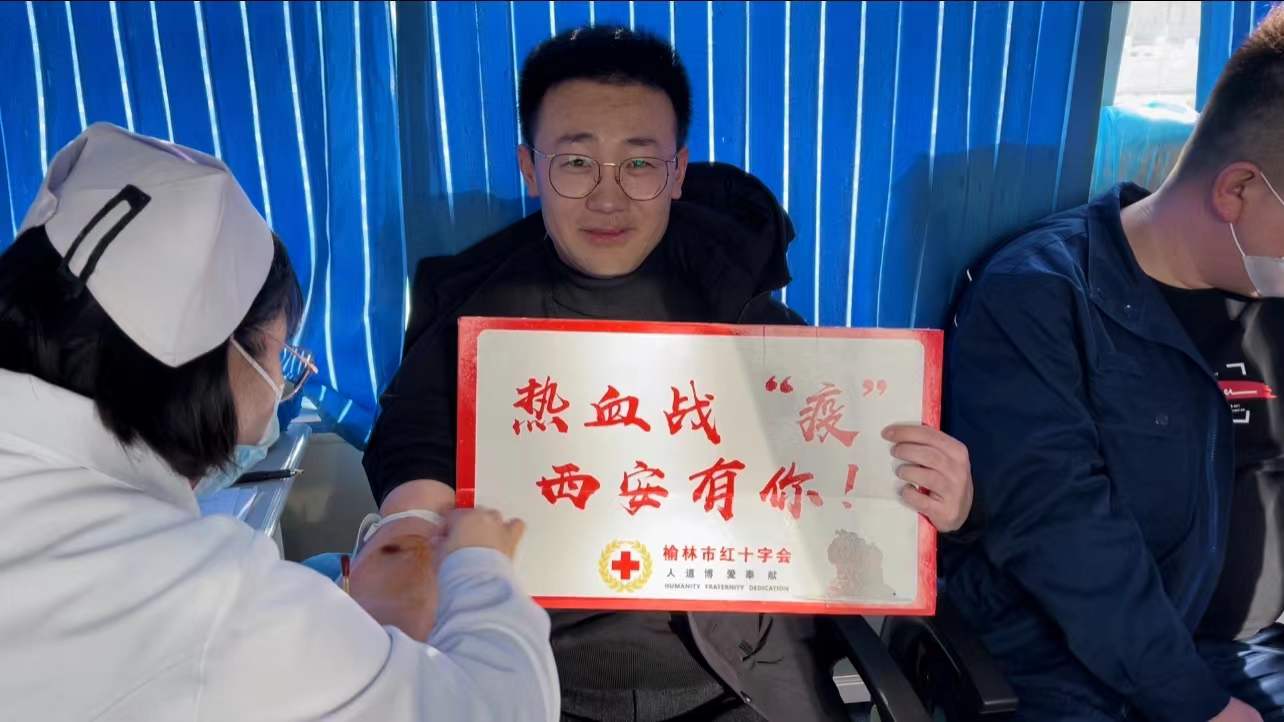 “作為一名共產黨員,能為西安的疫情防控做一點微薄的貢獻,我們義不容辭。”神木煤化工能源公司職工郭進孝在愛心獻血現場說道。