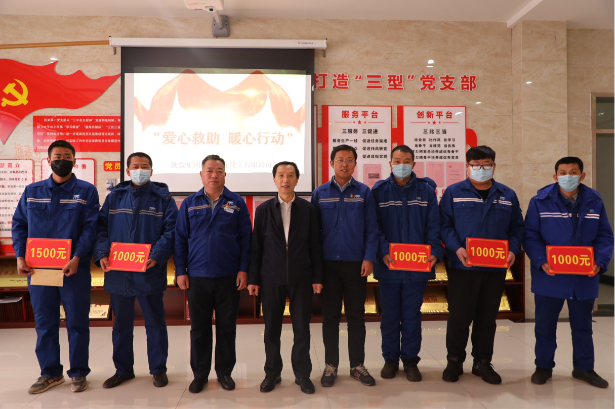 慰問(wèn)中,毛世強(qiáng)與困難職工一一握手并親切交談,詳細(xì)了解了他們的生活情況、工作情況等,并為每一名困難職工送上了慰問(wèn)金。毛世強(qiáng)表示,神木煤化工就是大家堅(jiān)強(qiáng)的后盾,希望大家堅(jiān)定信心、提振精神,以積極的態(tài)度面對(duì)生活,主動(dòng)作為,克服困難,早日走出困境。同時(shí),毛世強(qiáng)對(duì)“陜煤工匠”劉寧在過(guò)去的工作中發(fā)揮模范帶頭作用和在工作中取得的成績(jī)給予了肯定,并希望他繼續(xù)努力,弘揚(yáng)創(chuàng)新精神、奉獻(xiàn)精神和工匠精神,立足研發(fā)崗位,開(kāi)拓進(jìn)取,帶領(lǐng)團(tuán)隊(duì)創(chuàng)新、創(chuàng)效,在新的一年里為企業(yè)發(fā)展作出新的更大貢獻(xiàn)。