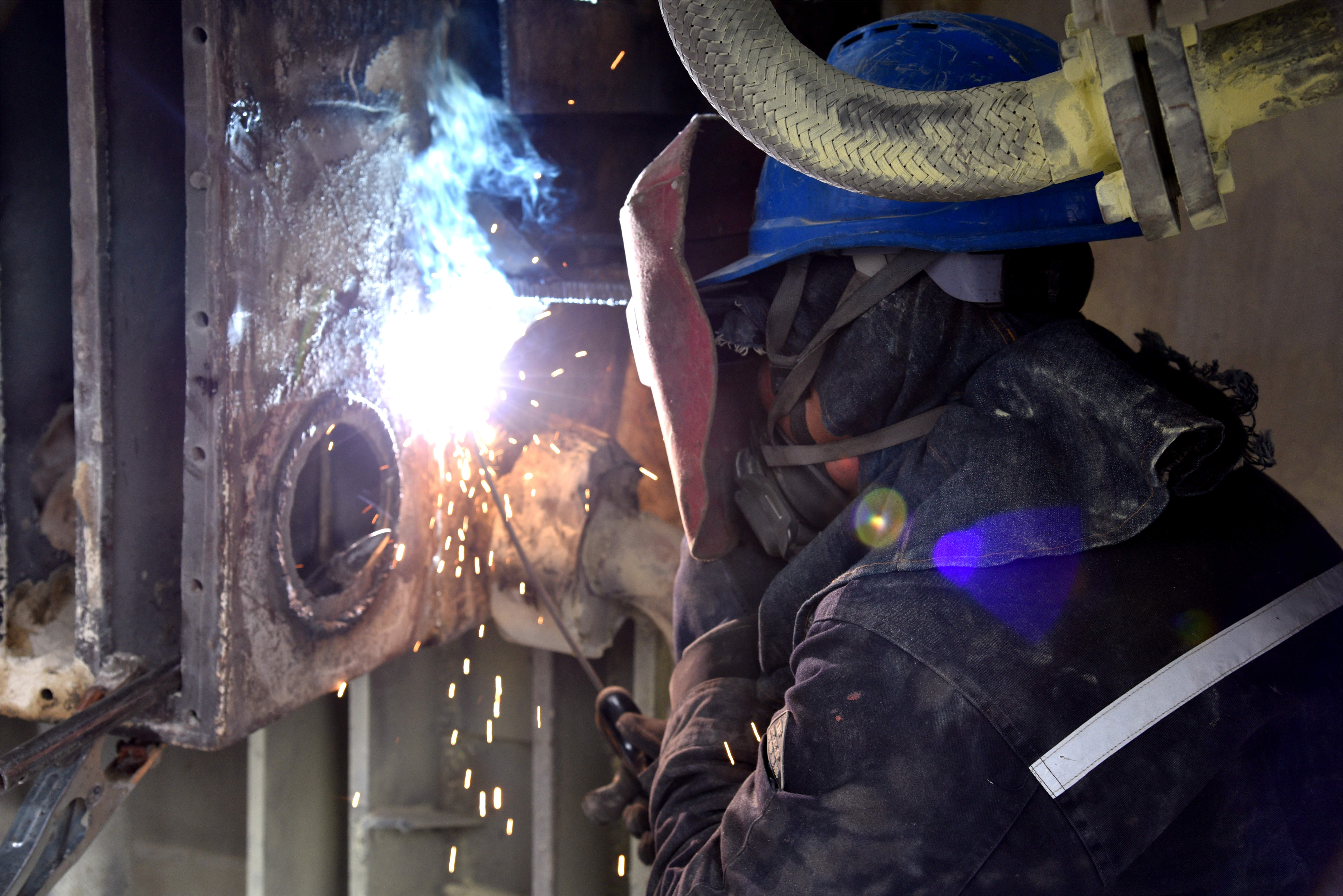 下午2:00,現場搶修工作全面鋪開,泰和公司副總經理王廷及各管理人員現場指揮,對搶修工作進行現場指導,確保施工安全、進度有序推進。各搶修人員堅持各自既定工作崗位,工作有條不紊,兩個焊工蹲在狹小的工作空間,不顧爐體高溫的灼熱,不時變換著姿勢,一絲不茍的進行焊接。其他人員也不示弱,都積極的干好自己的工作。