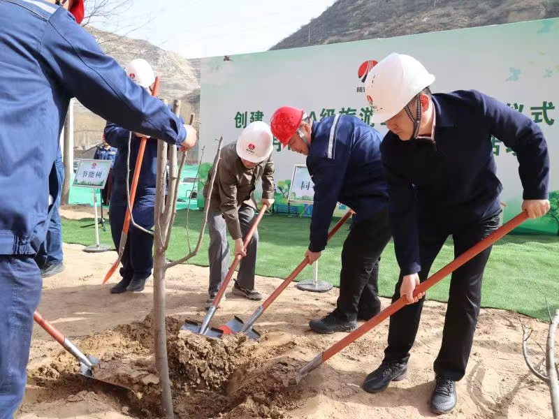 最是一年春光好,植樹添綠正當時。3月12日,植樹節來臨之際,神木煤化工公司在所屬電化公司舉行創建“AAA級綠色旅游工廠”啟動儀式暨植樹節活動。神木煤化工公司班子成員以及所屬電化公司領導班子、中層管理人員、各黨支部黨員代表及青年志愿者等共計50余人參加儀式。