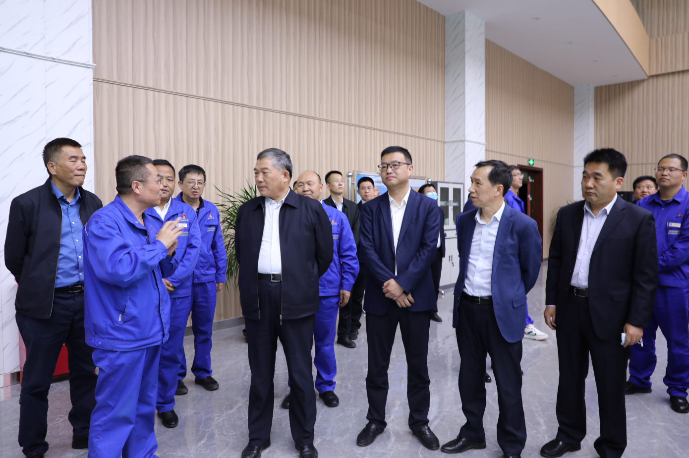 在60萬噸/年粉煤分質綜合利用項目裝置現場,楊照乾聽取了毛世強對該項目原料使用、生產過程、產品產出的情況介紹,了解了裝置運行、工藝特點、產品指標、綠色低碳及后續規劃等。