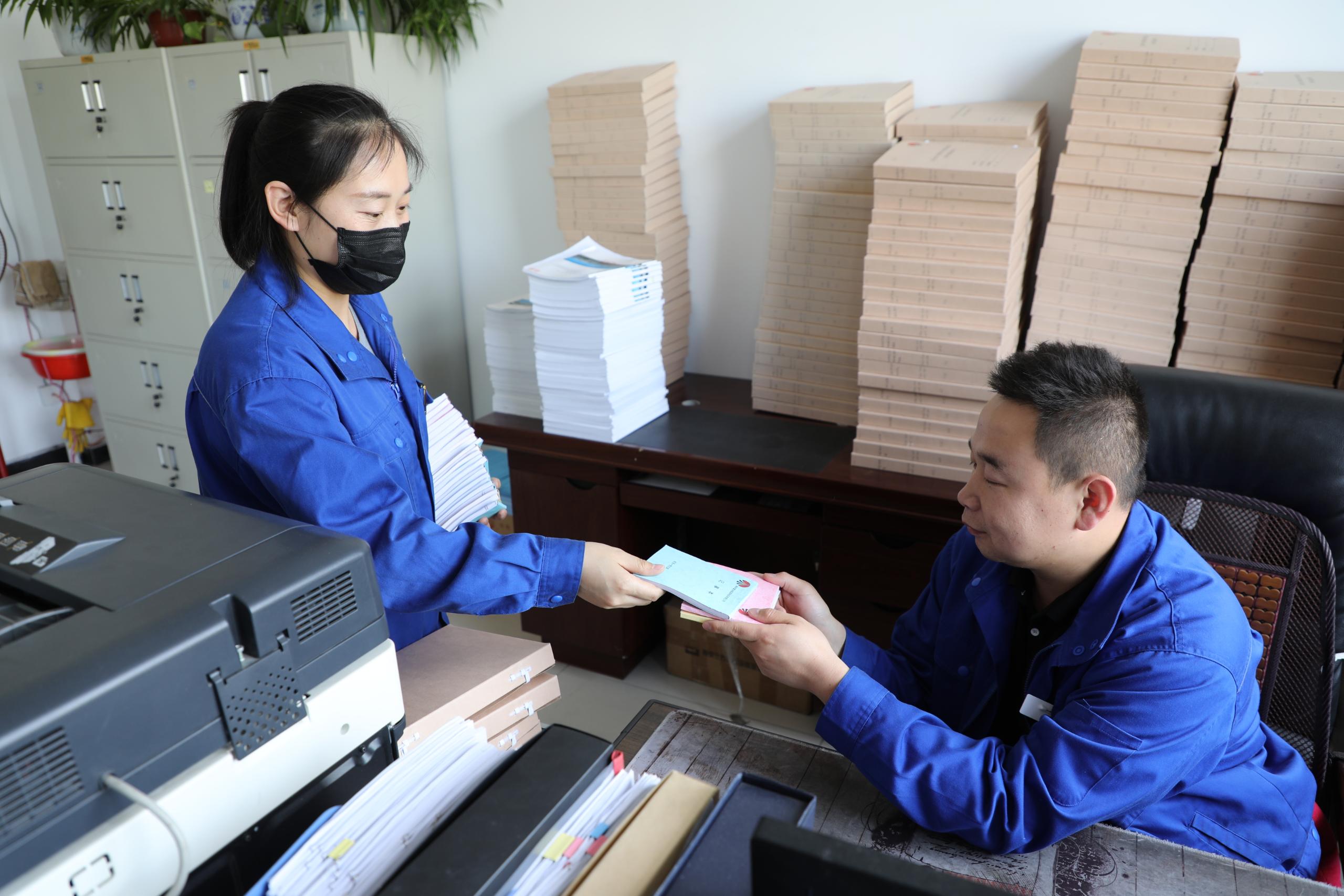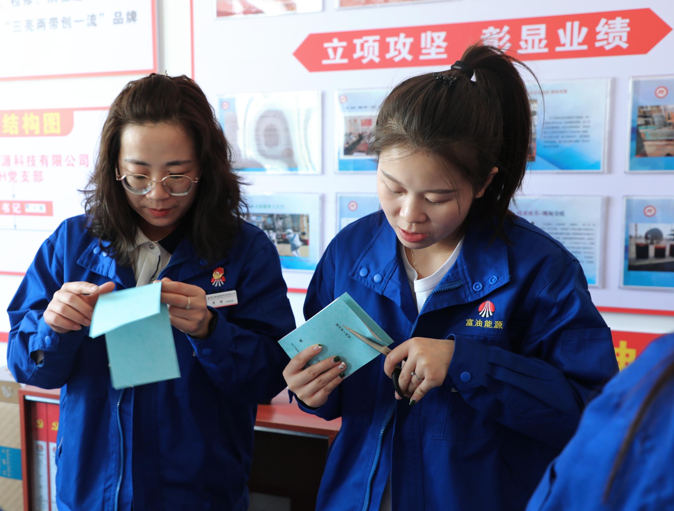 在其樂融融的氛圍中,經(jīng)過近兩個(gè)小時(shí)的時(shí)間,200余本精美而又實(shí)用的記事本呈現(xiàn)在眾人面前。隨后,支部黨員將記事本發(fā)放給富油公司各部門使用。