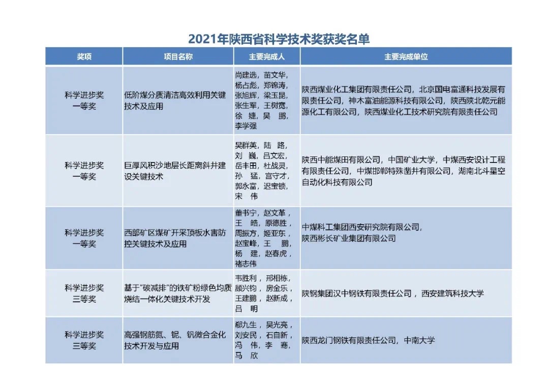近日,陜煤集團發來賀信,對神木煤化工富油公司參與完成的“低階煤分質清潔高效利用關鍵技術及應用” 項目獲得2021年度陜西省科學技術一等獎,向富油公司黨政領導、項目組成員及全體科技工作者表示熱烈祝賀!