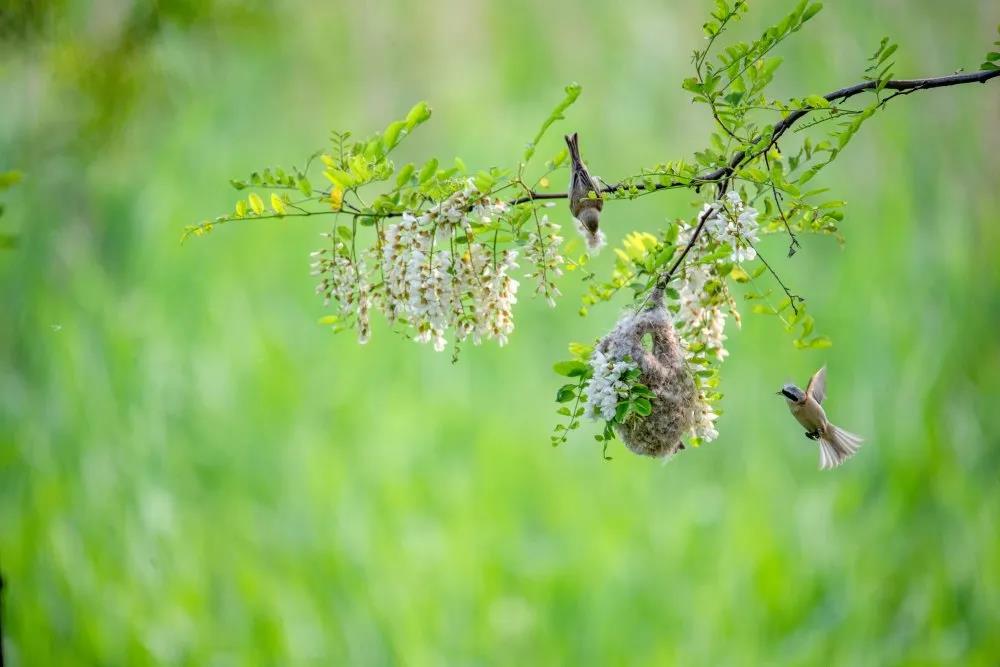 幾只雀兒在戲耍