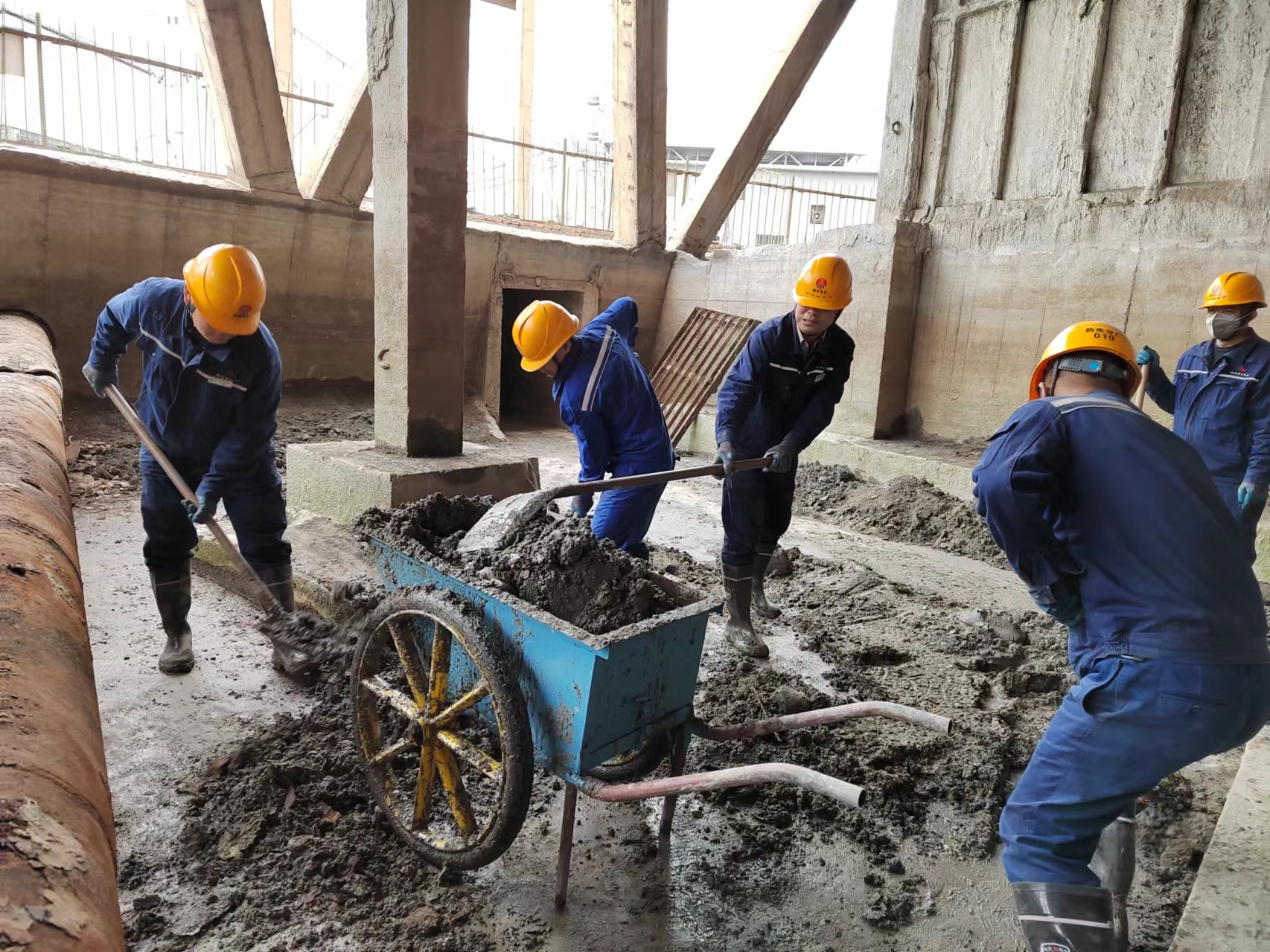 近日,神木煤化工電化公司熱電分廠3#機組冷卻塔池底淤泥清理工作正在緊鑼密鼓地進行中。在池底清理淤泥的工人師傅們怎么有些眼熟,走近一看,原來是由熱電分廠副廠長王武超帶隊,副主任工程師劉軍牽頭,動員熱電分廠工段長、技術員、班值長、黨員突擊隊等40余人一起來參加清理淤泥活動。